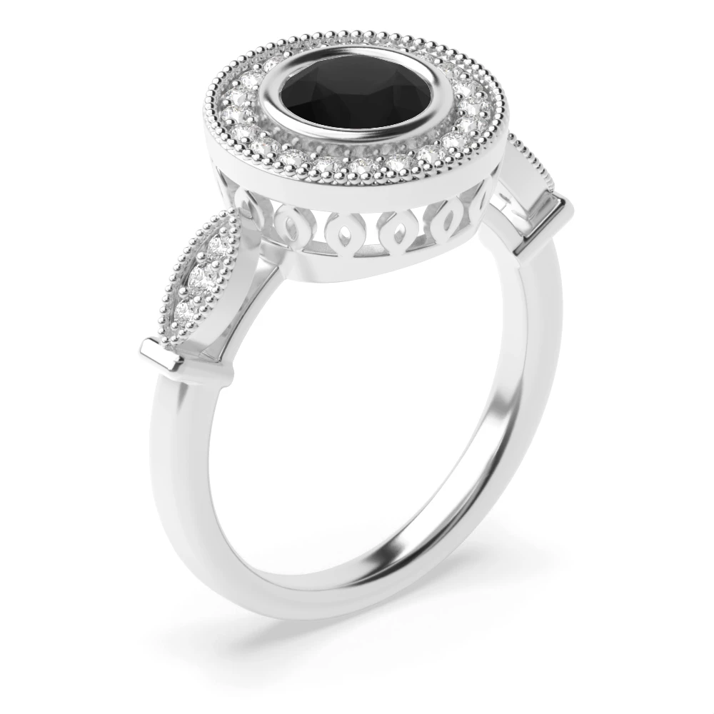 8K White Gold Black Diamond Side Stone Engagement Rings